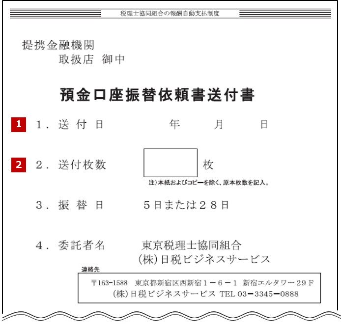 (1) 預金口座振替依頼書送付書の記入方法
