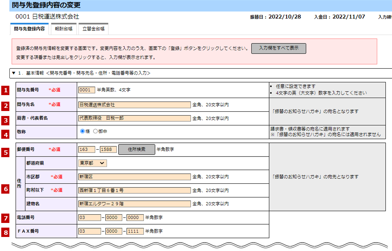 | FAX番号 | 関与先のFAX番号(半角数字)を入力します。 |