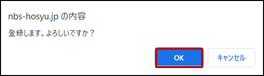 [メッセージ]画面が表示されます。内容を確認し[OK]ボタンをクリックします。