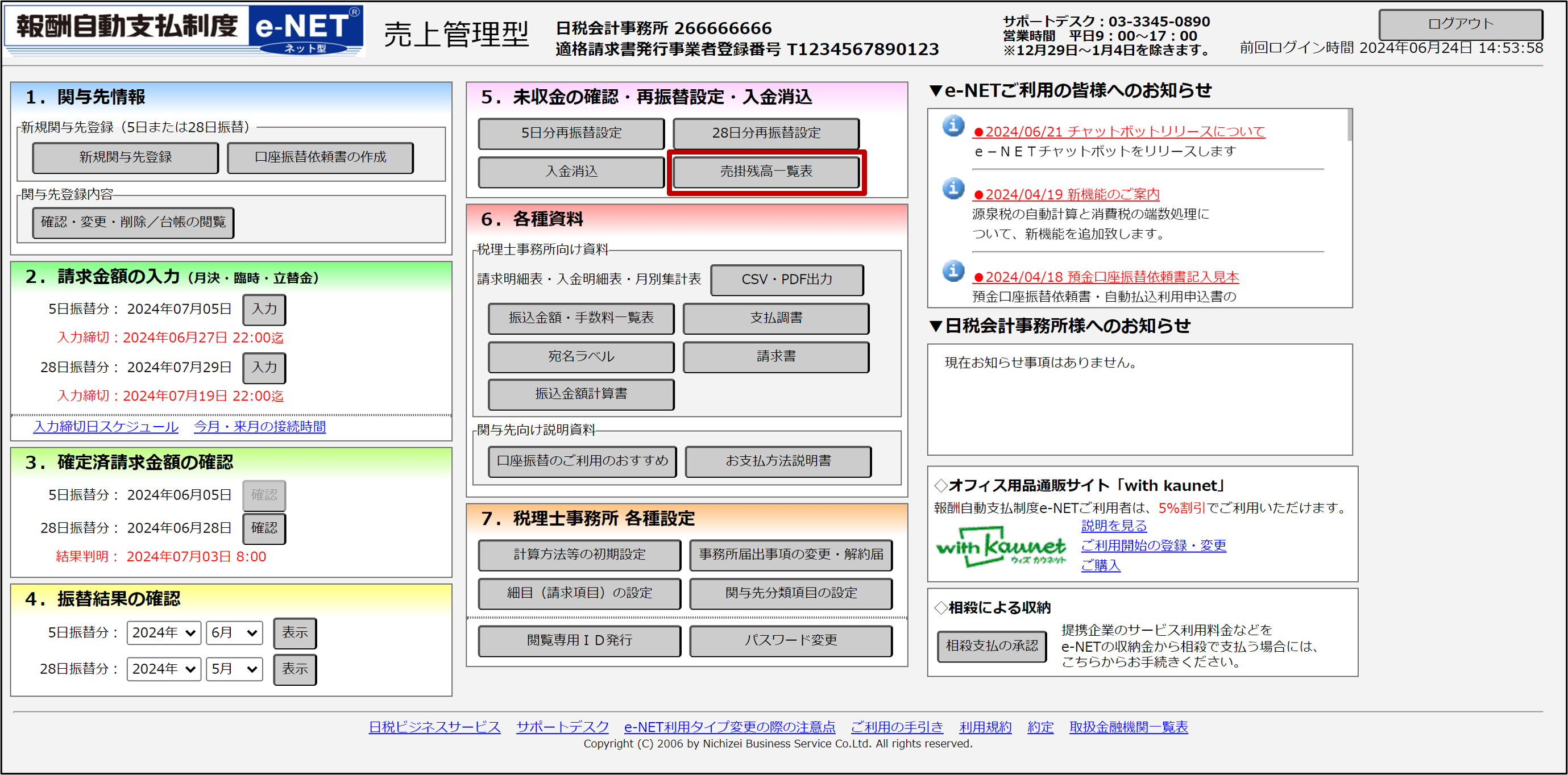 「売掛残高一覧表」の確認方法について説明します。