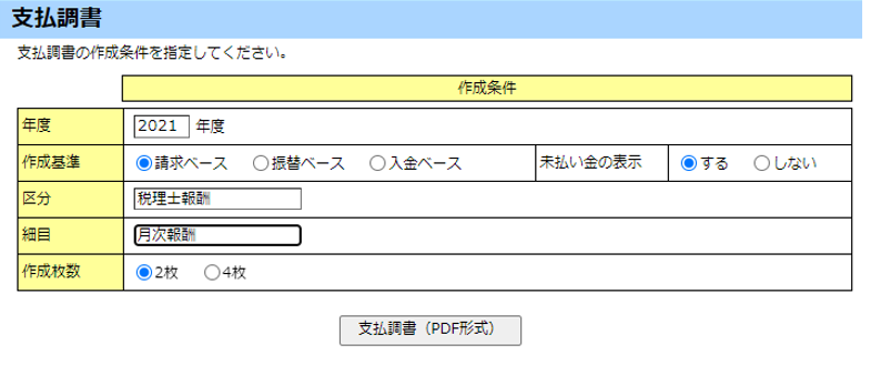 [支払調書(PDF形式)]ボタンをクリックします。『支払調書』が出力されます。