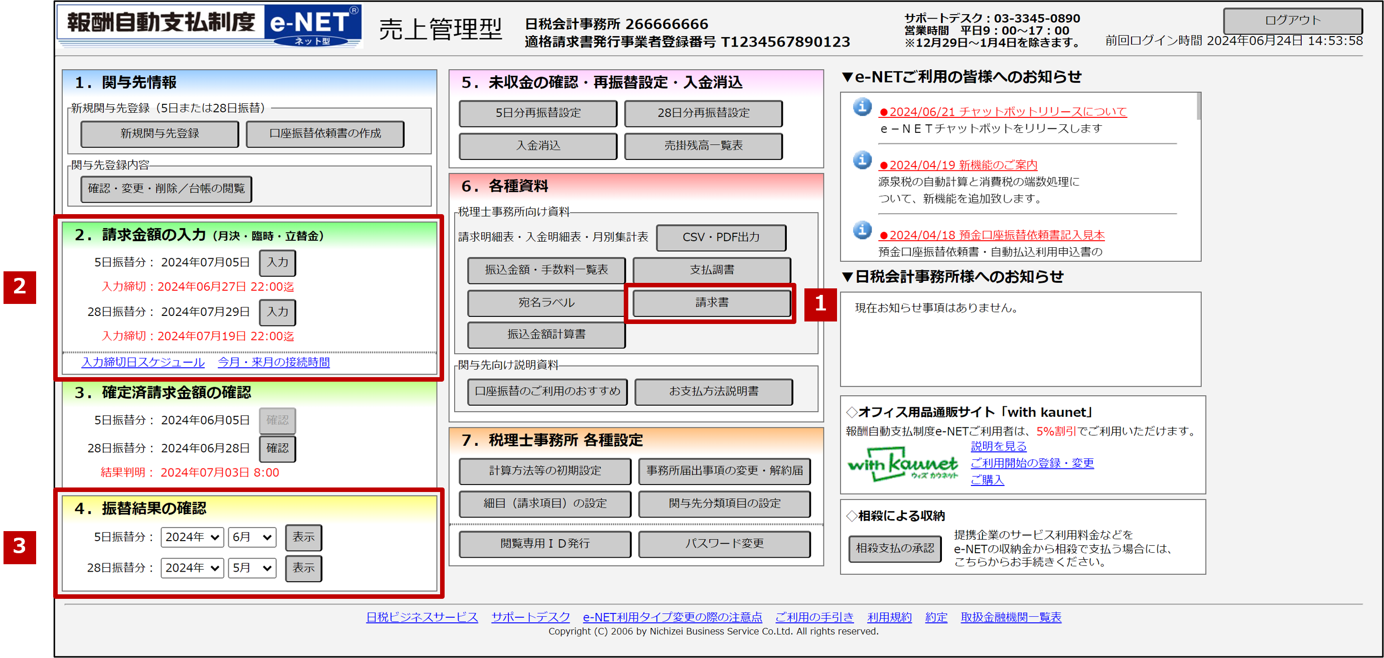 請求書 | 請求書作成メニュー | 請求書一括出力 | |