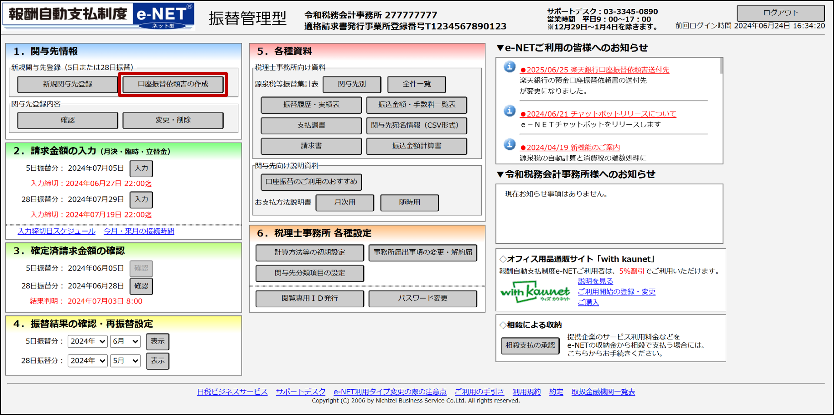 ・口座振替を利用する関与先を新規登録するとき