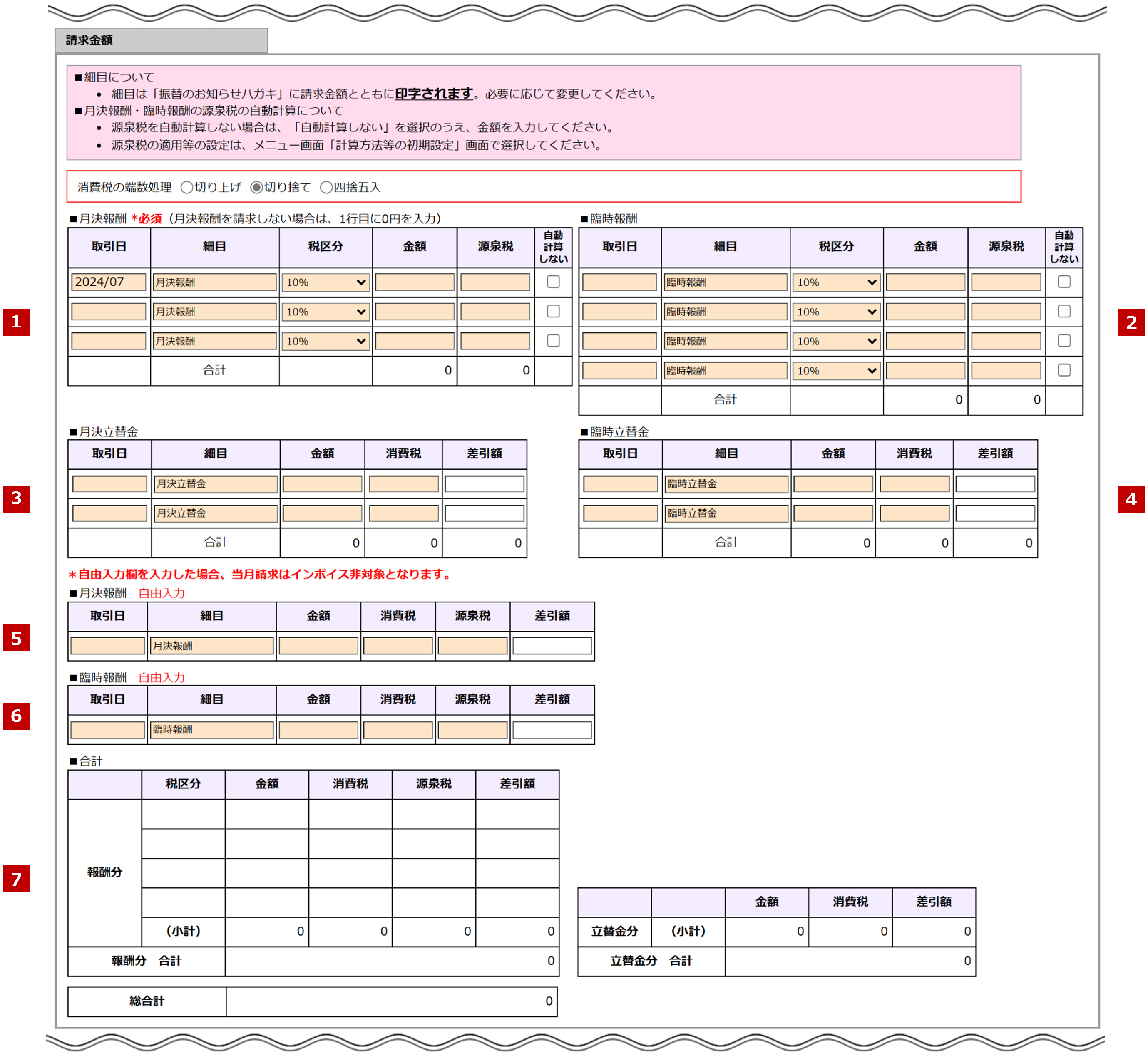 | 合計 | 1~6の請求金額の合計額が自動で表示されます。 |