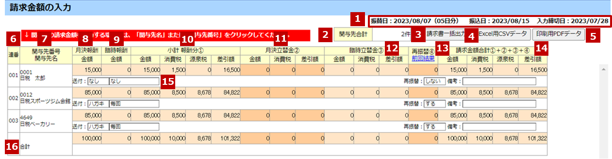 | 連番 | [請求金額の入力]画面の表示番号です。 | |