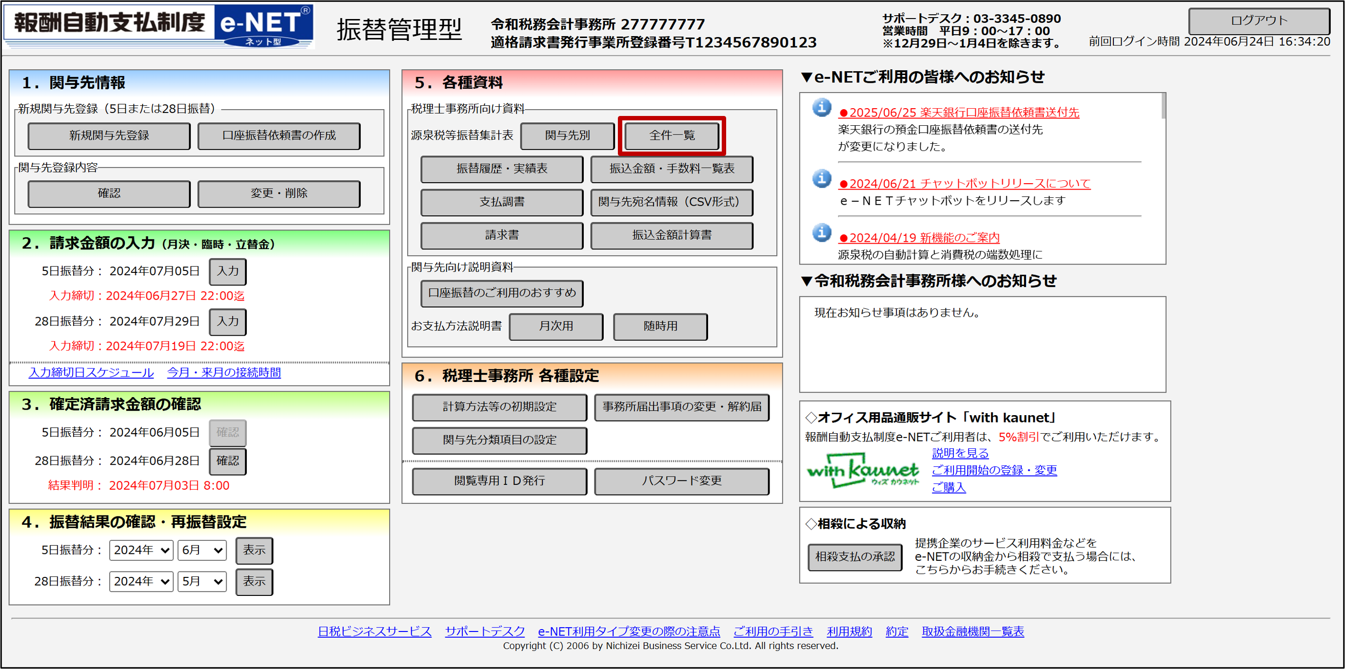 [メニュー]画面で[全件一覧]ボタンをクリックします。