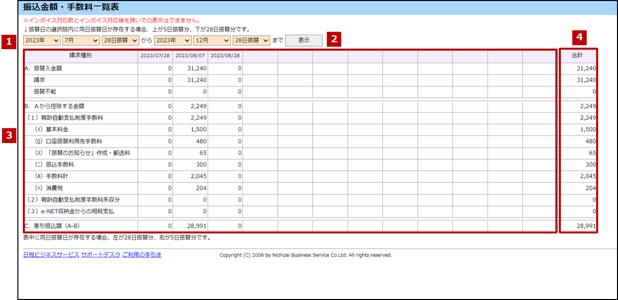 | 合計 | 請求種別ごとの合計額が表示されます。 |