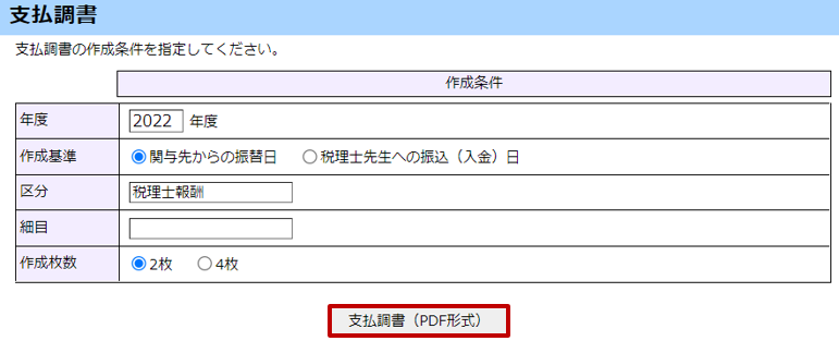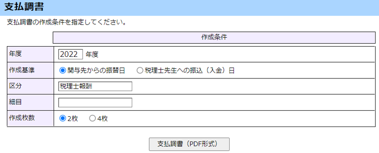 [支払調書(PDF形式)]ボタンをクリックします。『支払調書』が出力されます。
