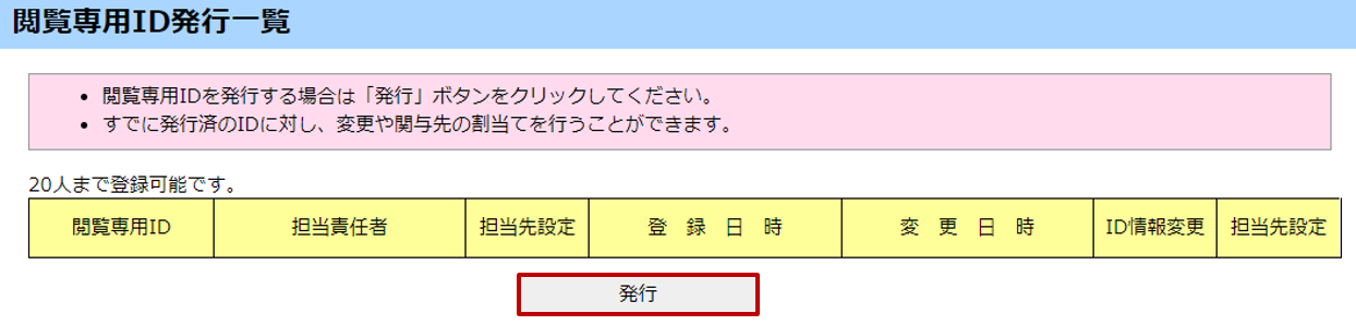 [閲覧専用ID発行一覧]画面で[発行]ボタンをクリックします。