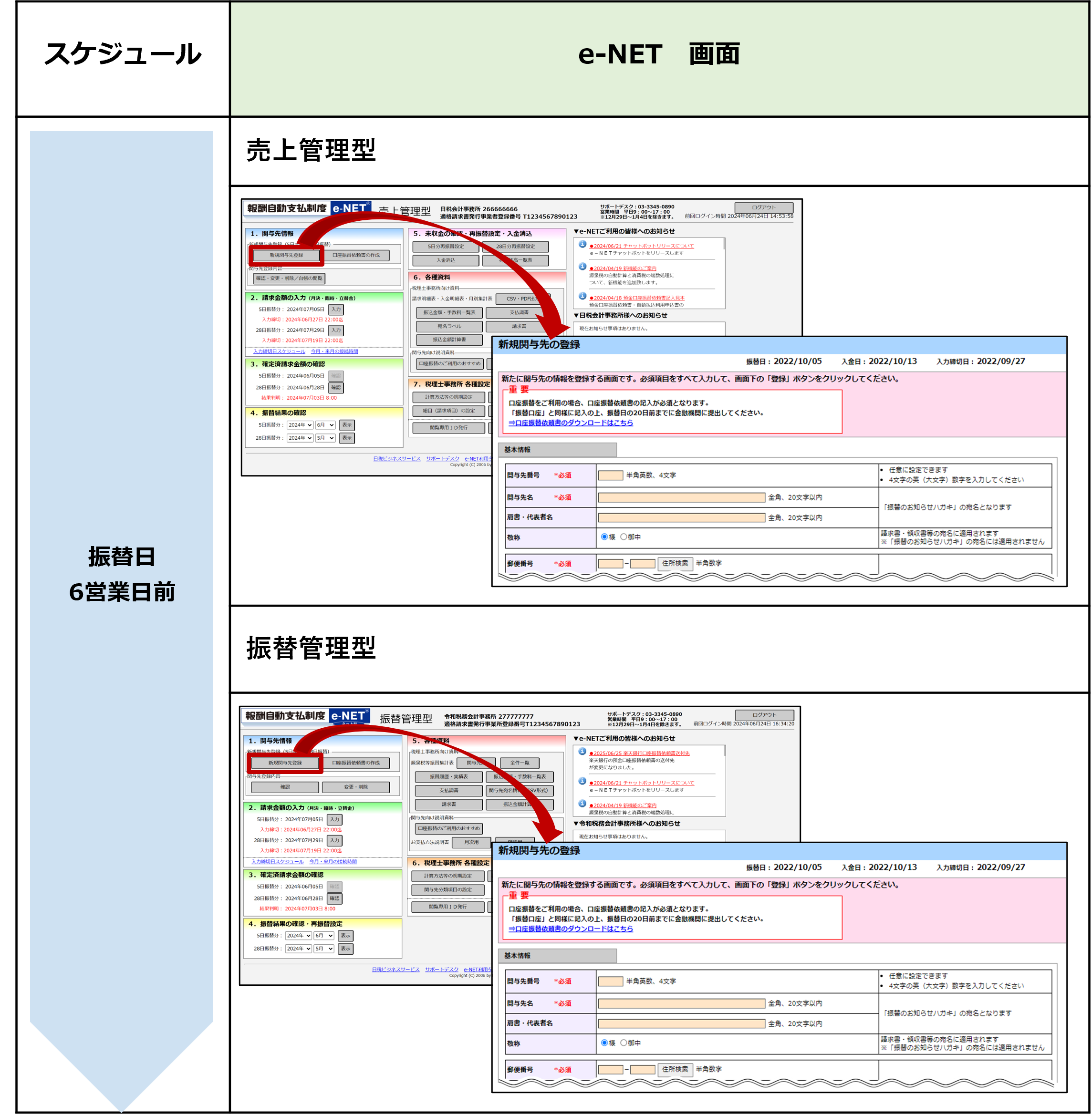 詳細はe-NET 振替管理型 8.1 新規関与先の登録を参照してください。
