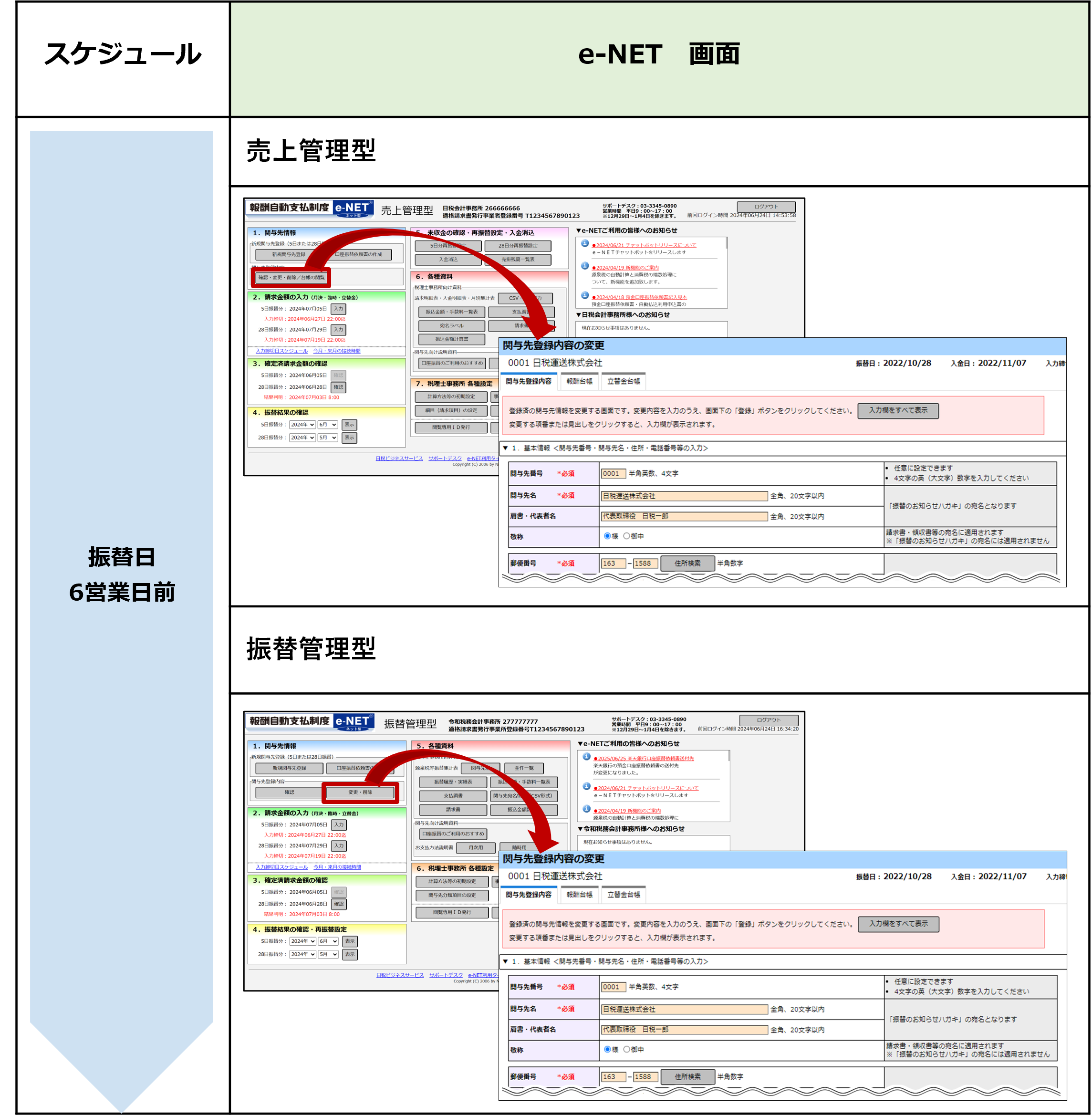 詳細はe-NET 振替管理型 8.4 関与先登録内容の変更・削除を参照してください。