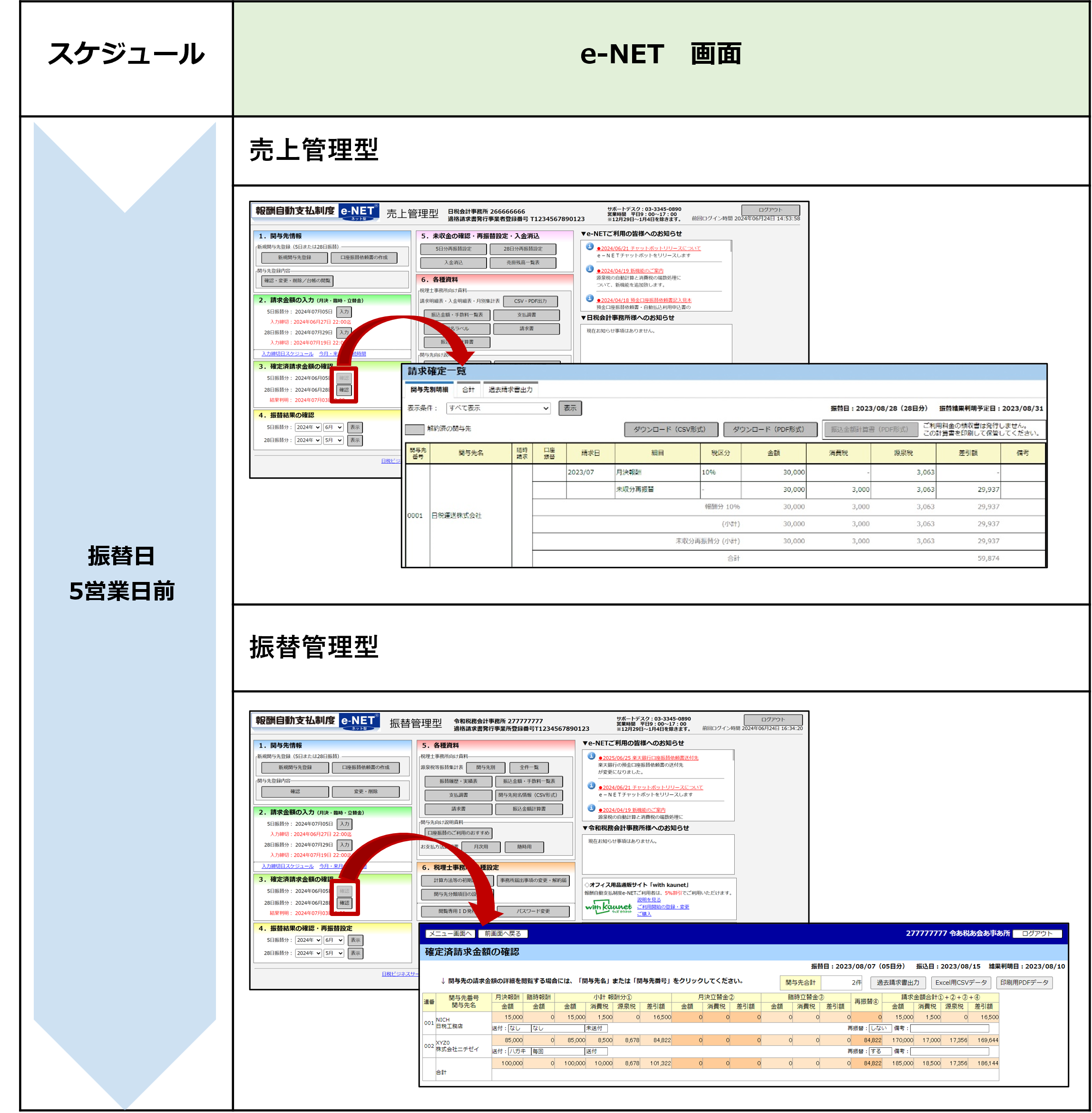 詳細はe-NET 振替管理型 9.1 請求金額の確認を参照してください。