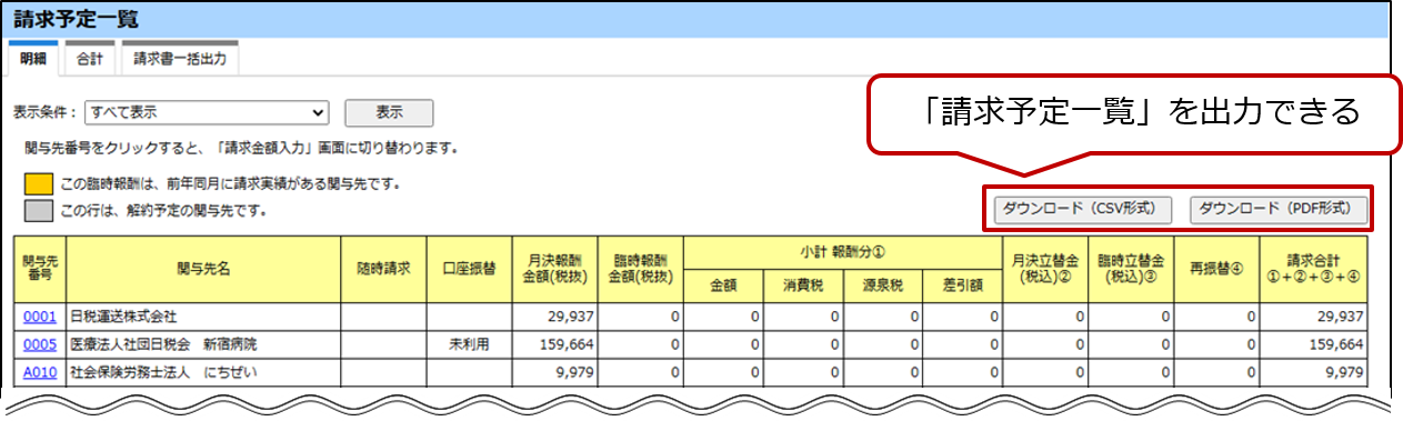 - [請求予定一覧]画面