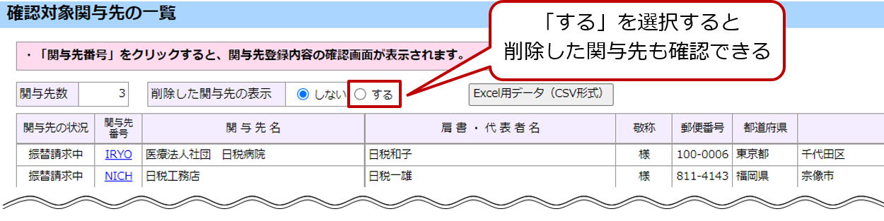 • [確認対象関与先の一覧]画面