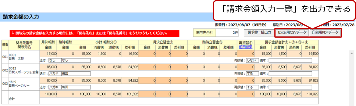 [請求金額の入力]画面などから確認できます。詳細は「e-NET 振替管理型 9章 請求金額の入力」を参照してください。
