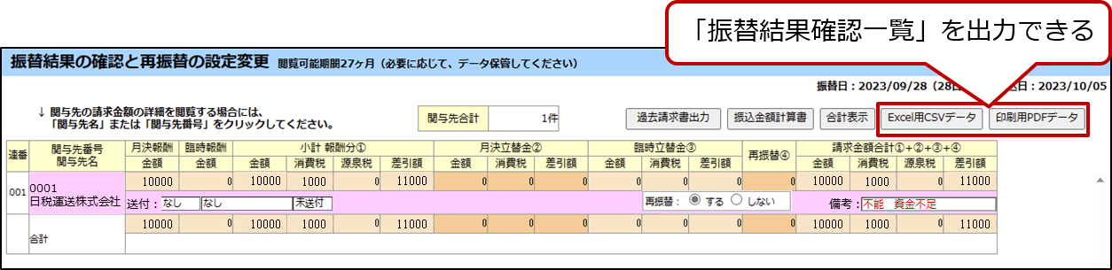 • [振替結果の確認と再振替の設定変更]画面
